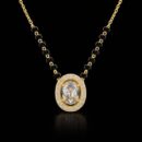 This Mangalsutra is designed to be versatile. Its minimalist pendant makes it perfect for layering with a longer gold necklace or wearing solo as a refined statement. For a cohesive look, pair it with simple diamond or gold studs. Because of its sleek oval design, it complements both high-neck blouses and plunging V-neck dresses beautifully