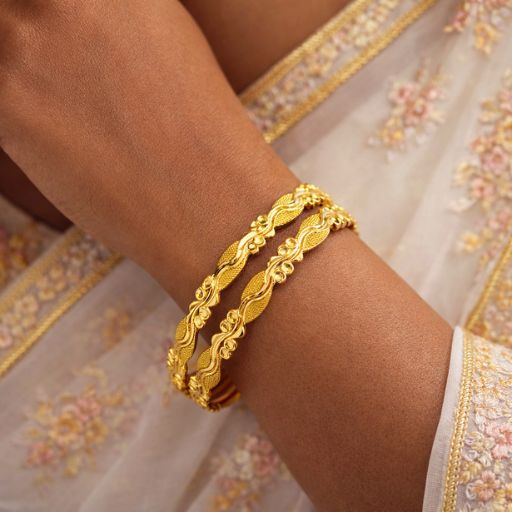 These bangles are designed to be a standout accessory. Let their unique scalloped edges take center stage by wearing them as a classic pair—one on each wrist—for a balanced, regal look. Their textured finish also makes them a perfect match for matte gold earrings or a traditional choker, creating a cohesive, high-end ensemble that feels both heritage-inspired and modern.