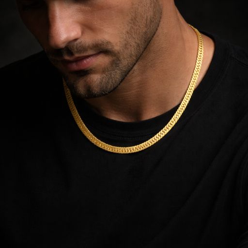 Command a presence of understated luxury with the Gold Curb Link Chain. Featuring a series of flat, interlocking diamond-cut links, this necklace is precision-engineered to sit flush against the skin for maximum comfort and brilliance. Each link is expertly polished to a high-mirror finish, ensuring a continuous stream of light reflection with every movement. Its substantial yet streamlined profile makes it a versatile essential, bridging the gap between rugged durability and high-fashion elegance.