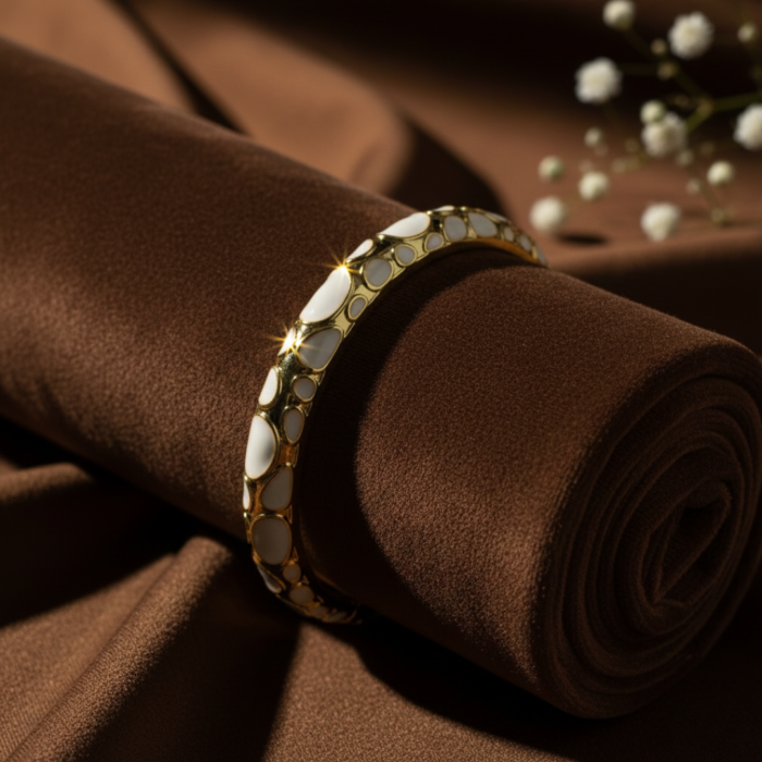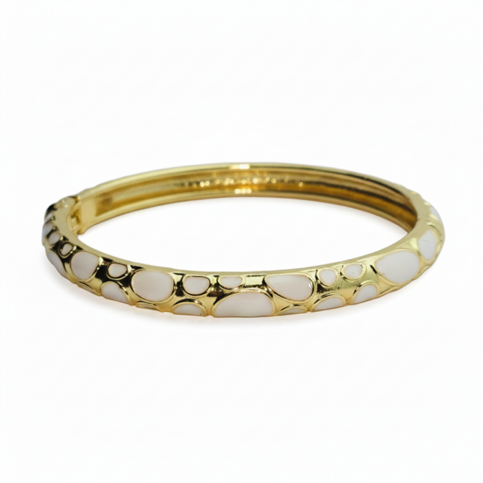 Gold-Tone White Enamel Bangle for Women | Elegant Designer Bracelet with Modern Oval Pattern | Premium Everyday & Occasion Wear